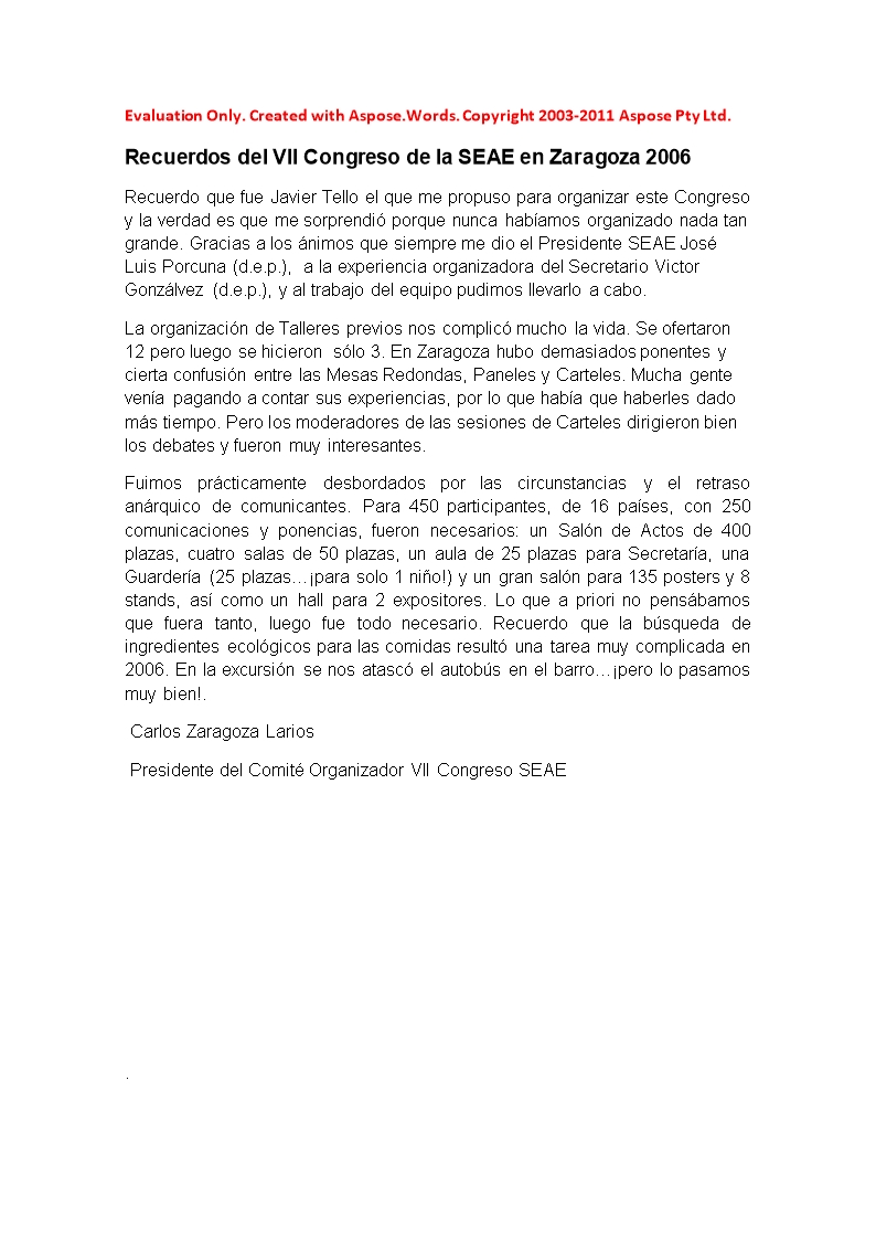 Recuerdos del VII Congreso de la SEAE en Zaragoza 2006