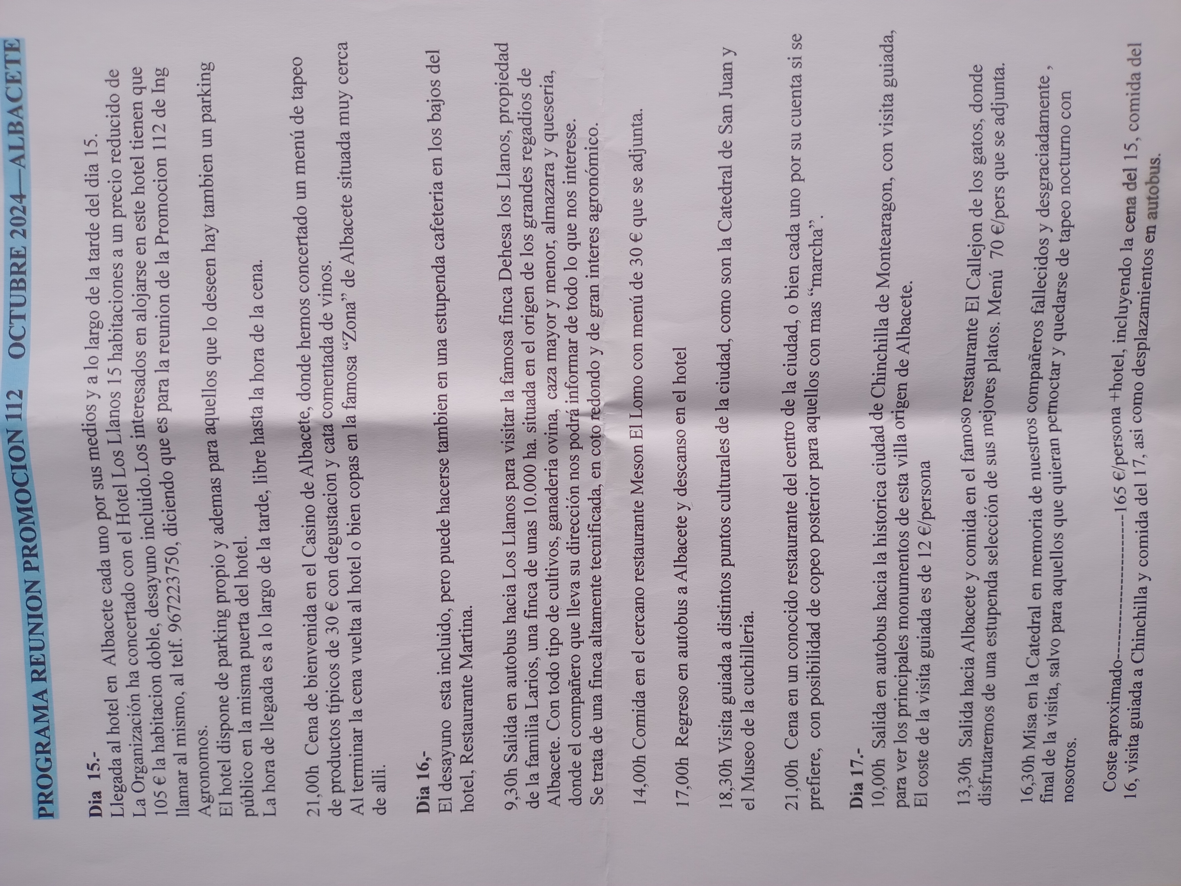 Se adjunta el Programa (como foto) y foto de los organizadores y Sras. (falta Juan Hurtado y Sra.).