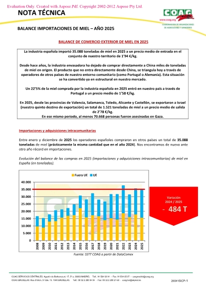 BALANCE DE COMERCIO EXTERIOR DE MIEL EN 2025